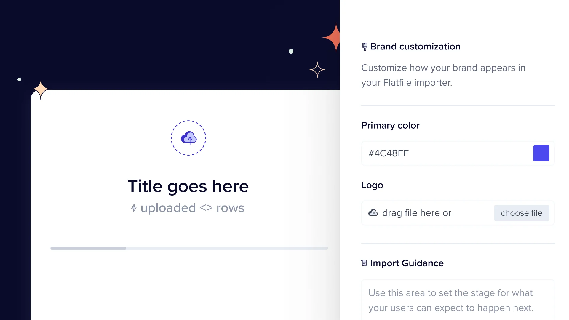 Add your logo Placing your logo in the Flatfile importer serves as an extra reminder of the awesome product where this data is going.