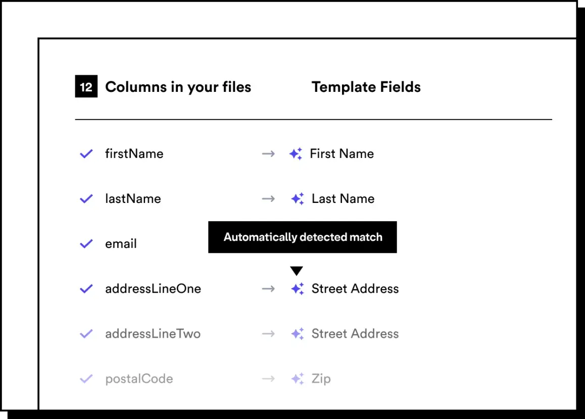 Automatically match 95% of imported columns using machine learning and fuzzy matching.