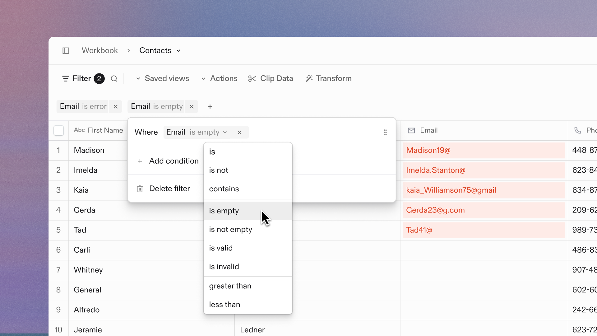 You no longer have to visit a separate interface to prompt AI to transform your data. With Inline Transform, you can select the three dots next to any field and type your prompts right there. You'll see a preview of any changes to your data and be able to edit or approve.